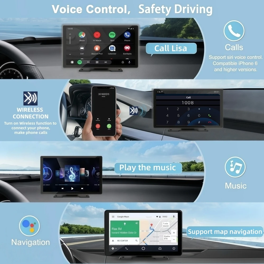 Hippcron 9-inch Car MP5 Multimedia Player Car HD Display with Wireless CarPlay and Android Auto Support Mirror Link